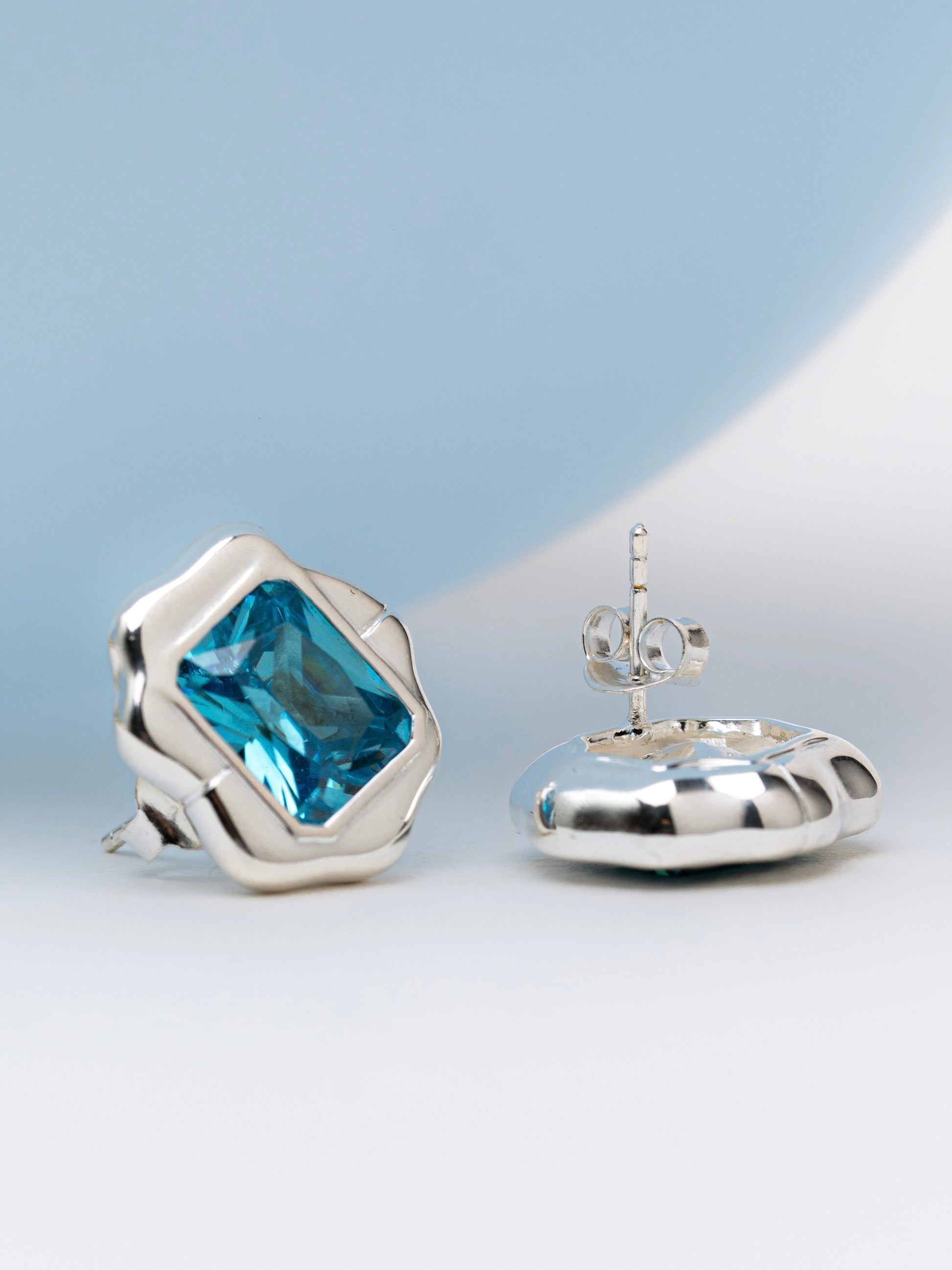 Fabriqués en argent 925 , les clous d'oreilles sont sertis d'une superbe pierre en zirconia cubique bleue, offrant une touche de couleur rafraîchissante qui rayonne d'élégance. Le design lisse et fluide de ces boucles d'oreilles évoque l'essence apaisante de l'eau, leur donnant l'impression d'une évasion luxueuse.