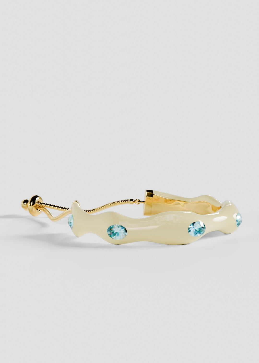 Crafted with a smooth milky enamel drop over a gold-plated 925 silver base, the bracelet exudes a sense of calm sophistication. The soft, luminous finish is both timeless and modern, making it a perfect addition to any collection.